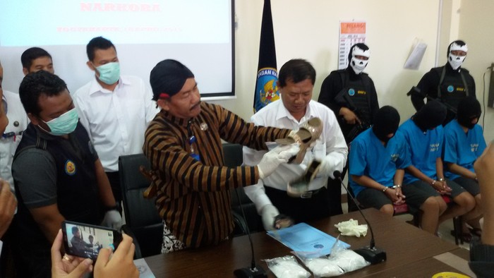 Badan Narkotika Nasional Propinsi (BNNP) Daerah Istimewa Yogyakarta (DIY) membekuk 3 tersangka dan mengamankan barang bukti sabu seberat 1,14 kg. Di dalam sandal, ada ruang palsu. Ketiga tersangka berinisial TA, RGS dan DP warga Cilacap, Jawa Tengah.