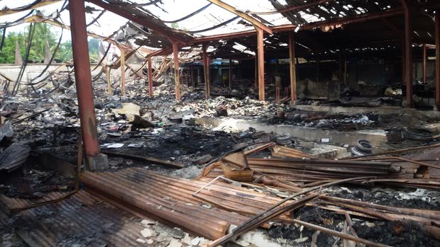 "Kami masih nunggu pemeriksaan, soalnya di dalam banyak barang berharga, ada uang, ada emas. Kita belum boleh masuk. Kita nunggu pengumuman," kata Jumiyati, di depan pasar Bendungan Wates yang sudah terbakar.