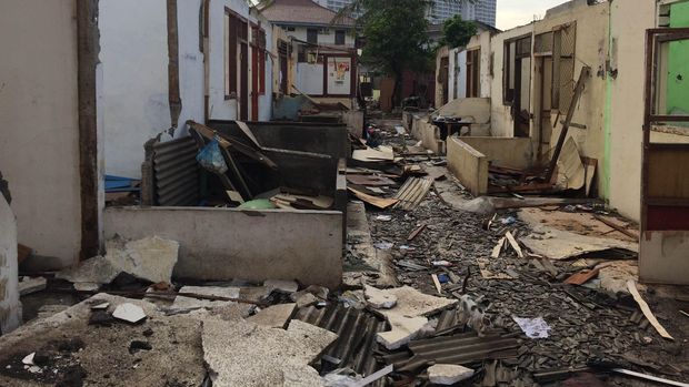 Bangunan-bangunan itu telah kosong dan ditinggalkan oleh penghuninya. Sebagian bangunan bahkan sudah dibongkar oleh pemiliknya.