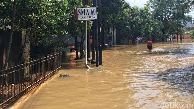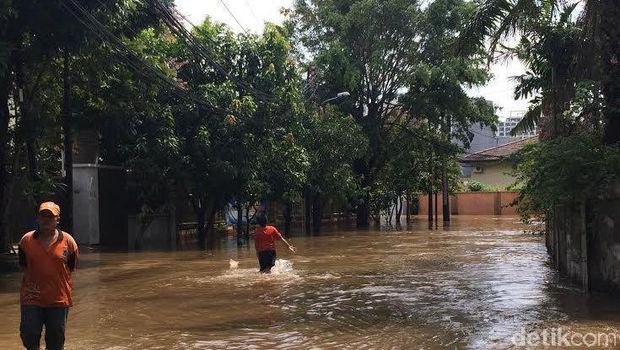Pantauan di Jl Kemang Timur V, Jaksel, Kamis (21/4/2016) pukul 11.00 WIB, banjir setinggi lutut masih menggenangi kawasan yang dekat dengan SMA 60 Jakarta itu. Semakin ke dalam, air semakin tinggi, bahkan hingga setinggi dada orang dewasa.