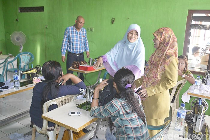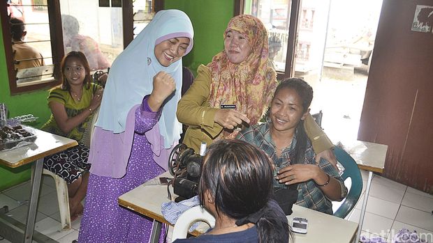 "Sekarang saya sudah bisa bikin celana, keset, di sini juga sebulan sekali pengajian. Senang ada pelatihan, kalau sendiri kursus kan mahal," tandas Vina.