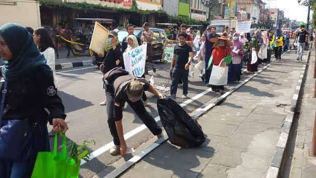 Mahasiswa juga memunguti sampah di jalanan (Foto: Edzan/detikcom) |