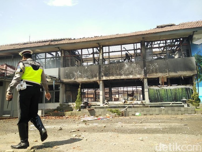Teriakan para napi mewarnai suasana Blok B sewaktu puluhan personel Brimob Polda Jabar berjaga-jaga di area Lapas Banceuy, Jalan Soekarno Hatta, Kota Bandung.
