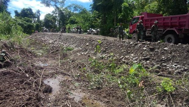 "TNI hanya membuka jalan. Untuk pembangunan lebih lanjut diserahkan kepada pihak kontraktor," jelas Gatot.