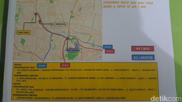 3.Massa dari Tangerang- Banten dilewatkan Tomang-Juanda- Veteran - Monas (lokasi parkir : Monas,Irti,Istiqal dan Lap Banteng dan Parkir Timur Senayan dan sekitar Senayan).