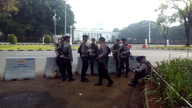 Pantauan detikcom, pukul 09.05 WIB, Minggu (1/5/2016), belum ada rombongan buruh yang tiba di depan Istana. Polisi sudah berjaga di lokasi meski posisinya berpencar.