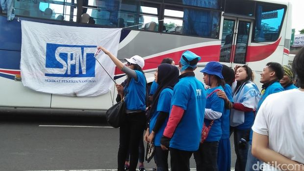 Buruh yang melakukan aksi demo ini terdiri dari buruh-buruh yang berasal dari Jabodetabek. Mereka menuntut kehidupan buruh yang lebih baik, penghapusan outsourcing dan lain-lain.
