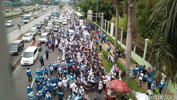 Aksi buruh ini membuat lalu lintas tersendat dari JCC sampai di depan Gedung DPR. Kemacetan baru terurai ketika sudah melintasi Gedung DPR. Untuk Tol Dalam Kota, situasinya juga sedikit tersendat karena para pengendara melambatkan lajunya di depan Gedung DPR.
