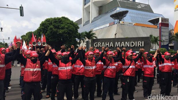 "Rencananya kita tadi pagi mau masuk ke HI terus ke Istana tapi enggak dikasih karena ada CFD dan itu diatur Pergub. Padahal menurut UUD semua orang bisa mengungkap pendapat di depan umum," ucap Sukanti.