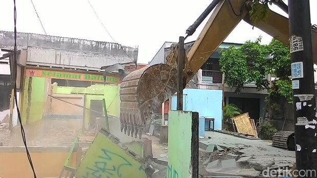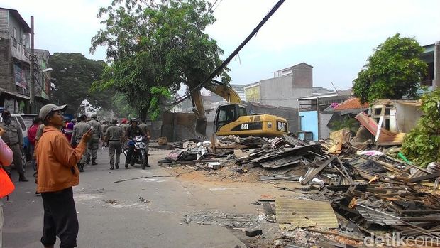 Di lokasi, Senin (2/5/2016) pukul 09.30 WIB, hampir seluruh bangunan sudah rata dengan tanah. Tak ada perlawanan dari pemilik bangunan.