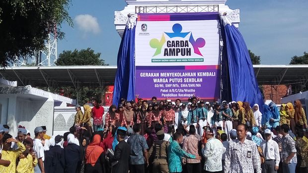 "Garda Ampuh ini akan jadi program gerakan satu tahun ini. Ditargetkan sedikitnya 3.101 anak putus sekolah akan diajak agar menempuh pendidikan yang ditetapkan pemerintah baik formal atau informal. Kalau informal tetep tidak bisa kita program keterampilan. Sehingga dengan begitu kita potret habis anak-anak yang putus sekolah sehingga mereka masuk dalam lama sekolah yang ditetapkan oleh standar nasional," ujar Anas usai upacara peringatan Hari Pendidikan Nasional di Taman Blambangan, Banyuwangi, Senin (2/5/2016).