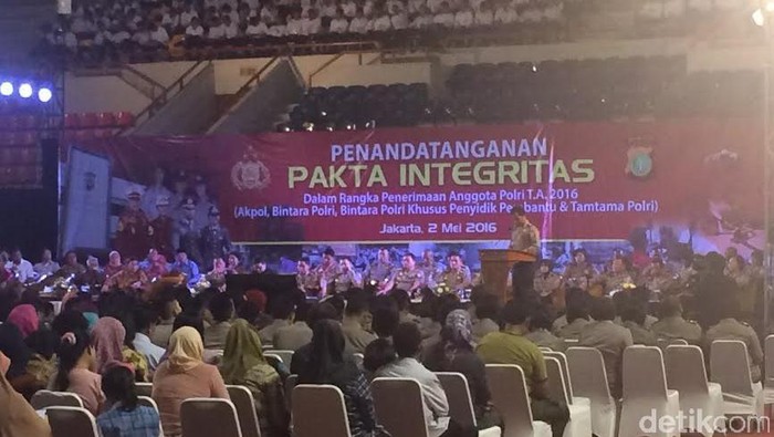 Hal itu disampaikan Moechgiyarto pada sambutannya dalam penandatanganan Pakta Integritas dalam rangka Penerimaan Anggota Polri TA 2016 di Tenis Indoor Senayan, Gelora Bung Karno, Senayan.