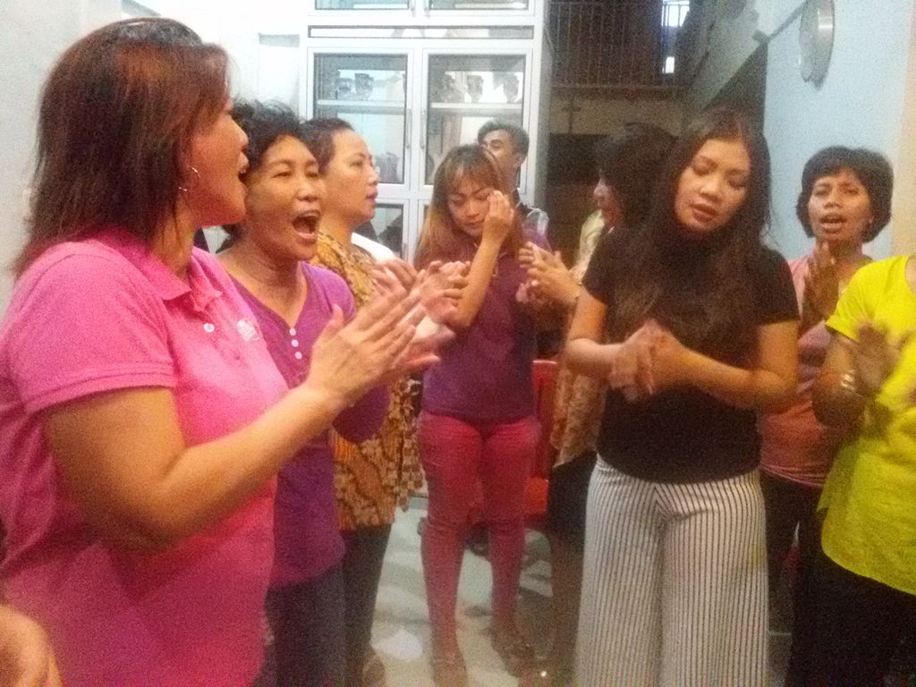 Sekitar 8 anggota keluarga yang sudah menunggu dari tadi menyanyikan puji-pujian untuk mensyukuri kembalinya Alvian ke rumah, Senin (2/5/2016). Kebahagiaan terpancar dari mata keluarga Alvian.