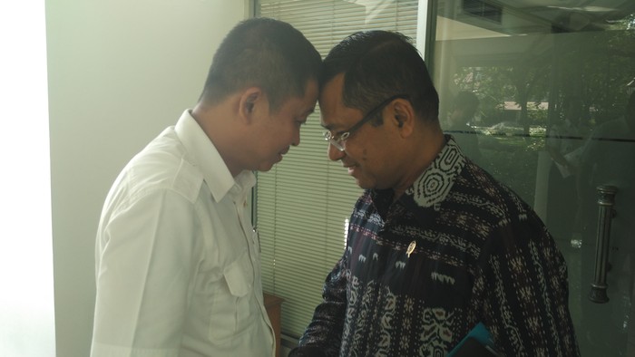 Para menteri di Kabinet Kerja pun memiliki cara sendiri-sendiri untuk menyapa sesama kolega menteri. Seperti yang dilakukan Menteri Perhubungan Ignasius Jonan dan Menteri Perindustrian Saleh Husin, Senin (2/5/2016).