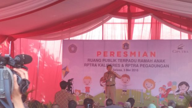 Gubernur DKI Jakarta Basuki Tjahaja Purnama meresmikan RPTRA Kalideres (Wisnu Prasetyo/detikcom)