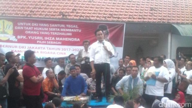 ![]() Bacagub DKI Yusril Ihza Mahendra menghadiri tasyakuran warga Bidara Cina, Selasa (3/5/2016). (Foto: Ahmad ziaul Fitrahudin/detikcom) |