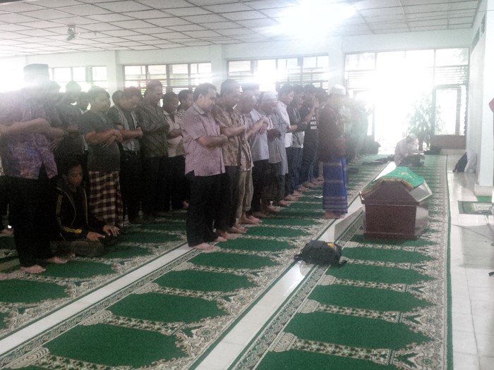 Prosesi salat jenazah tampak khusyuk. Sang ibu Nurcahaya Ningsih (48) dan kakak sepupunya Diyanti Siregar (24) tampak juga ikut menyalatkan jenazah Feby.