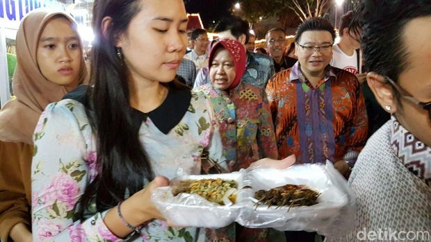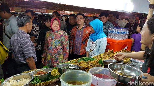Risma berkeliling melihat-lihat aneka kuliner yang dijajakan. Foto: Zaenal Effendi/detikcom