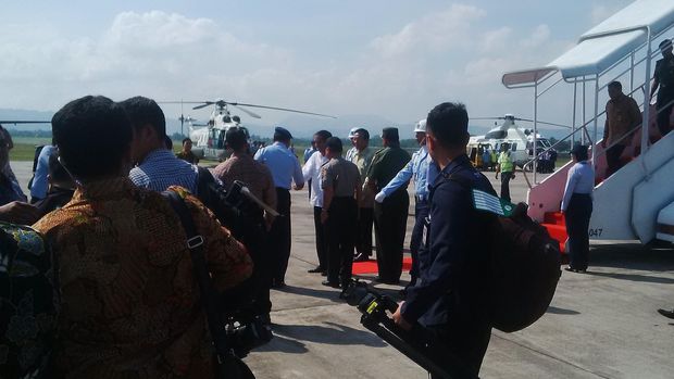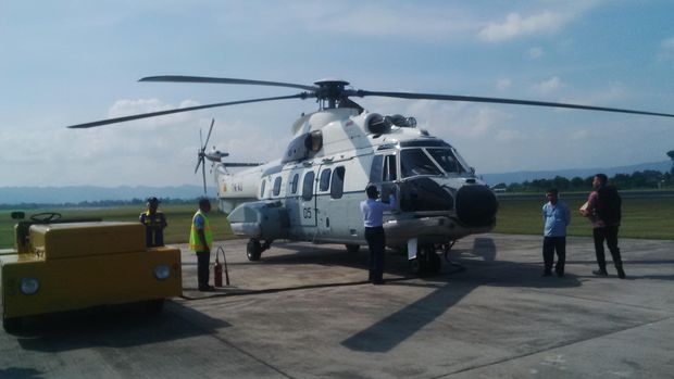 Foto: Tiba di Yogyakarta Presiden Jokowi langsung terbang ke Banyumas menggunakan helikopter super puma milik TNI AU (M Iqbal/detikcom) |