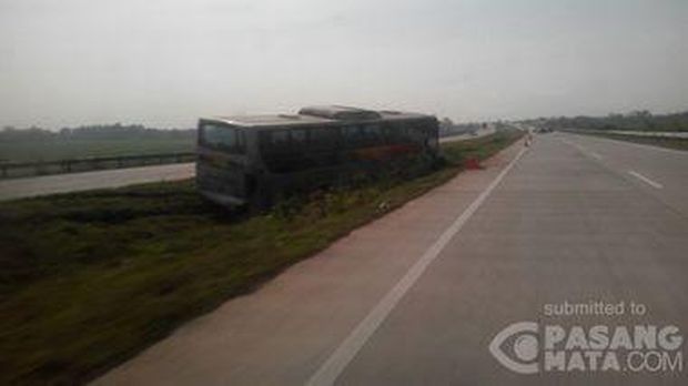 Foto: Bus terperosok di Tol Cipali (Suparno/pasangamata.com)