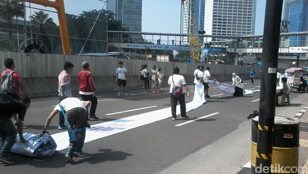 Spanduk yang dibentangkan saat CFD (Foto: Muhammad Fida/detikcom) |