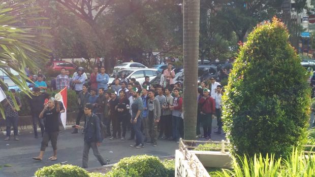 Pantauan di depan gedung KPK, Jl HR Rasuna Said, Jakarta Selatan, Senin (9/5/2016) ratusan massa HMI masih berkumpul di depan gedung KPK. Mereka menutup satu lajur Jl HR Rasuna Said arah Mampang.