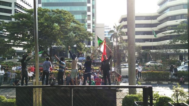 Foto: Demo massa HMI di depan Gedung KPK (Habibi/detikcom)