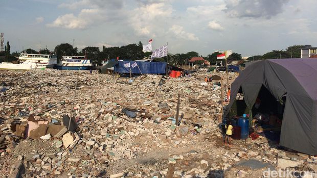 Dari pantauan di lokasi, ada sekitar 6 tenda yang didirikan untuk menampung warga yang setelah penggusuran tinggal di aula mesjid Luar Batang dan di perahu. Ada 2 toilet darurat yang dibangun secara mandiri oleh warga, tidak jauh dari lokasi tenda.