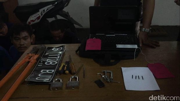 Dari para pelaku, polisi menyita barang bukti berupa 1 unit motor yang digunakan sebagai sarana kejahatan, 1 unit laptop dan 5 buah mata paku terbuat dari jari-jari payung. Para pelaku dijerat dengan Pasal 363 KUHP tentang Pencurian dengan ancaman hukuman maksimal 7 tahun penjara. (aws/aws)