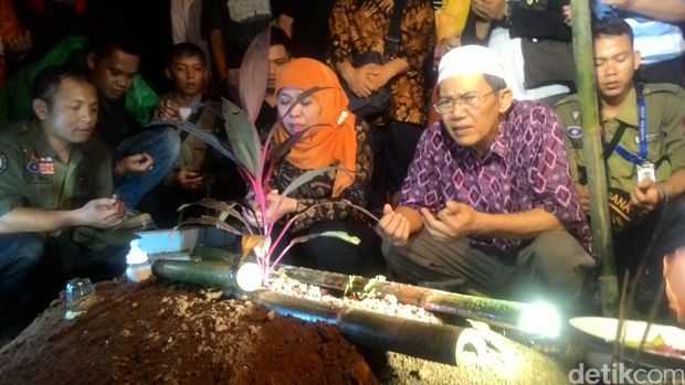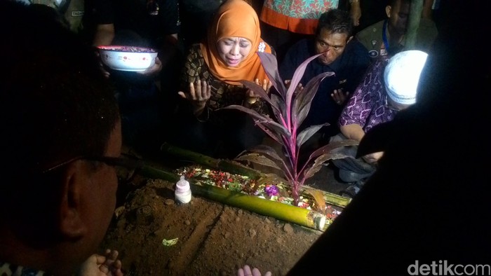 Khofifah lalu memimpin doa bersama di hadapan makam balita tersebut yang tidak jauh dari dari rumahnya. Sambil menangis tersedu-sedu, Menteri Khofifah membaca doa-doa di pusara.