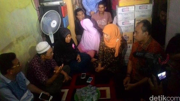 Menteri Khofifah tiba di rumah korban pada Kamis (13/5/2016) pukul 18.15 WIB. Dalam kesempatan tersebut, dia juga sempat berbincang dengan kedua orangtua korban, Ahmad Samiran dan Nuryanah di dalam kediaman nenek korban, Rukiyah yang hanya sekitar 50 meter dari rumah pelaku.