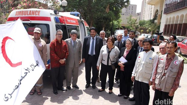 Dalam keterangan tertulis yang diterima detikcom, Jumat (13/5/2016), disampaikan bahwa bantuan tersebut disalurkan rakyat Indonesia melalui Pos Keadilan Peduli Umat (PKPU) dan Bulan Sabit Merah Indonesia (BSMI). Bantuan tersebut diterima oleh Sekretaris Jenderal BSM Mesir, Prof. Moamena Kamel.