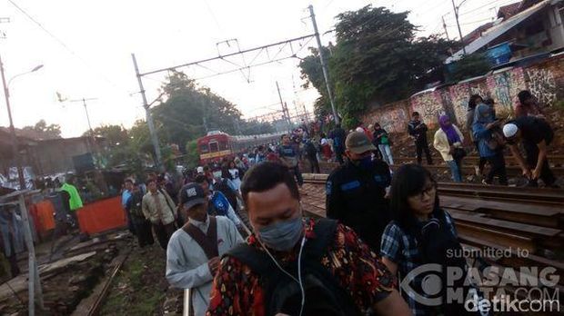 Informasi itu disampaikan melalui akun Twitter resmi PT KCJ (Kereta Api Commuter Jabodetabek) @CommuterLine, Rabu (18/5/2016). Kereta yang anjlok jurusan Bogor-Jatinegara.