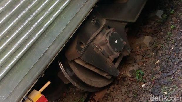 Gerbong yang anjlok adalah gerbong dua. Berdasarkan foto yang diterima detikcom dari warga, tampak roda KRL tidak lagi berada di rel atau keluar jalur.