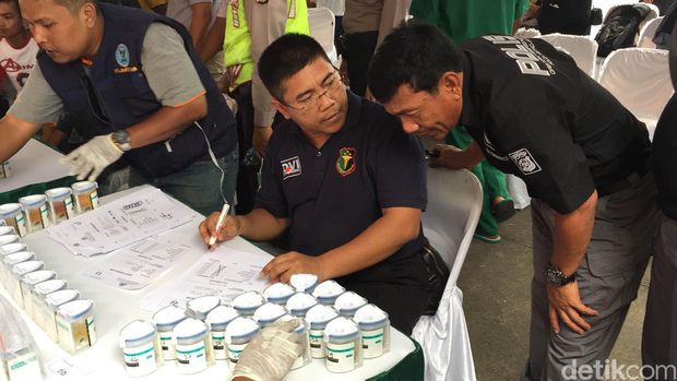 "Hari ini yang diperiksa ada 158 orang, yang positif ada 3. Yang pertama, atas nama Suparjo, positif amphetamine, yang kedua Samsul Hudi, sopir bus Langsung Jaya, yang ketiga Minal Adrian, bukan kru bus, tetapi orang yang berkeliaran di terminal ini," ungkap John Turman Panjaitan, Direktur Reserse Narkoba Polda Metro Jaya di parkir bus antarkota Terminal Kampung Rambutan, Jakarta Timur (19/5/2016).