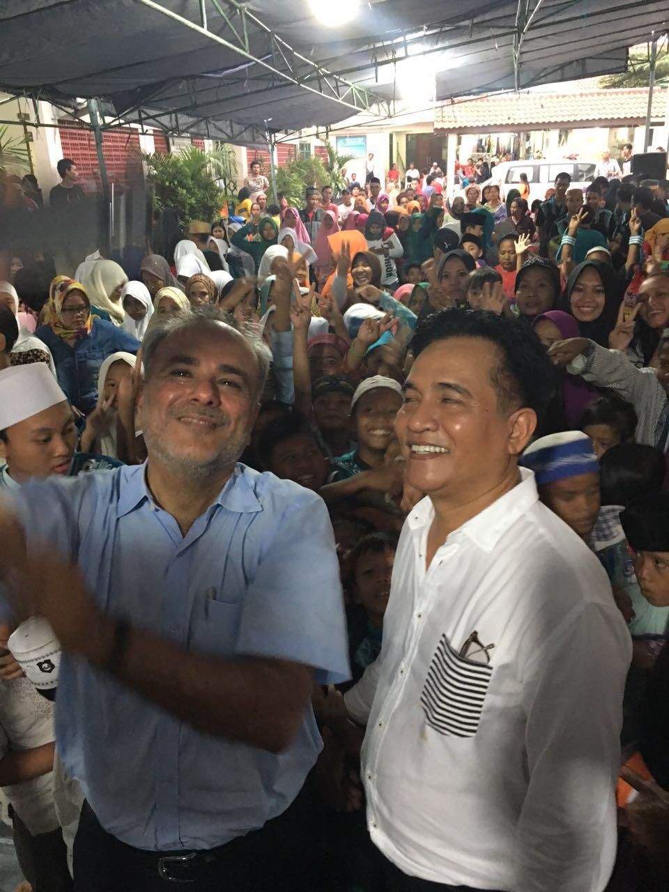 Usai dialog, Yusril dan Saud memberikan santunan kepada anak-anak yatim dan keluarga tidak mampu, serta pembagian kitab Alquran kepada warga Luar Batang. (erd/bag)