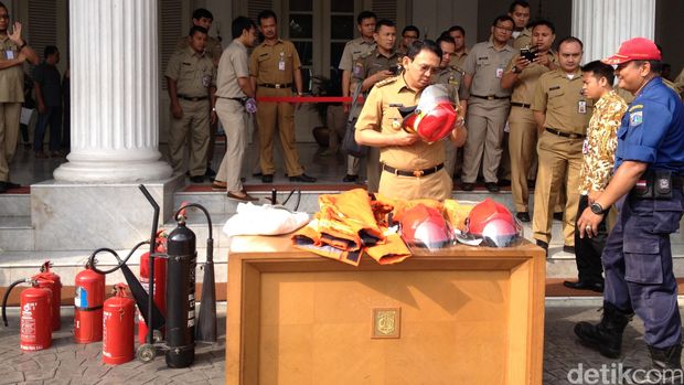 "Semua PNS harus kuasai, minimal mengerti tabung (APAR) itu fungsinya apa. Karena kalau sudah kebakaran enggak sempat lagi pakai baju api bos. Yang penting jangan panik. Hydran di mana, tabung pemadam di mana dan lain-lainnya harus tahu," kata Ahok di Ruang Balai Agung Gedung Balai Kota DKI, Jl Medan Merdeka Selatan, Jakarta Pusat, Senin (23/5/2016).