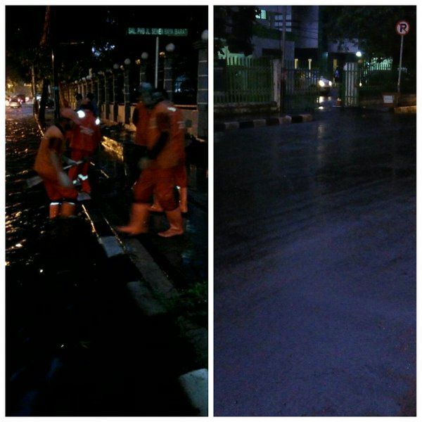 Dari foto di akun Twitter BPBD DKI @BPBDJakarta seperti yang dilihat detikcom pada pukul 22.18 WIB, Senin (23/5), terlihat petugas sedang berjibaku membersihkan selokan. Tampak dari foto tersebut dahan-dahan dan dedaunan menyumbat jalannya air.