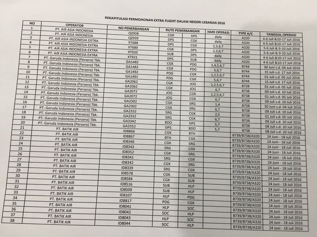 Berikut penambahan frekuensi atau rute penerbangan dengan rincian sebagai berikut: