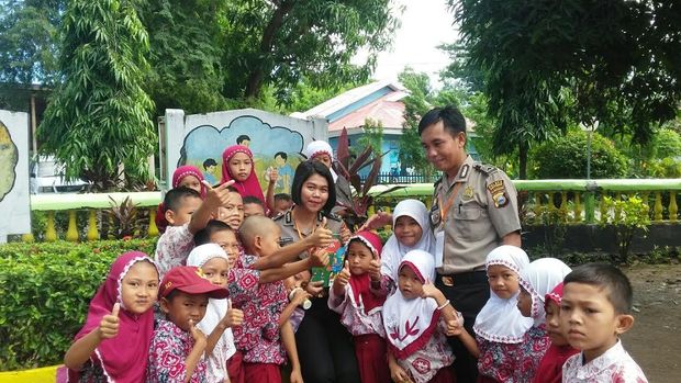 "Juga menjelaskan tentang apa saja tugas pokok kepolisian, mengajarkan tentang peraturan rambu lalu lintas serta memberi motivasi dan menginspirasi siswa-siswi SD Jagong," jelas Kurniawan.
