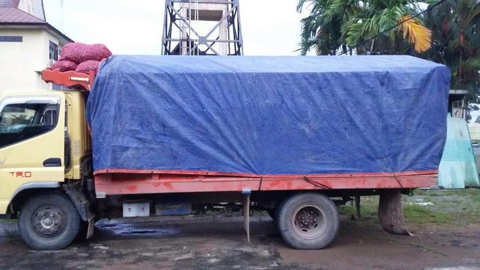 "Satu unit Truk yang membawa/mengangkut Gula pasir putih, bawang merah dan minuman kaleng serta minuman botol yang diduga berasal dari luar negeri," jelas Arief.