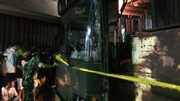 Agus mengatakan, saat kejadian bus tidak dalam kecepatan tinggi. Akibat insiden tersebut, kaca bus sebelah kiri retak.
