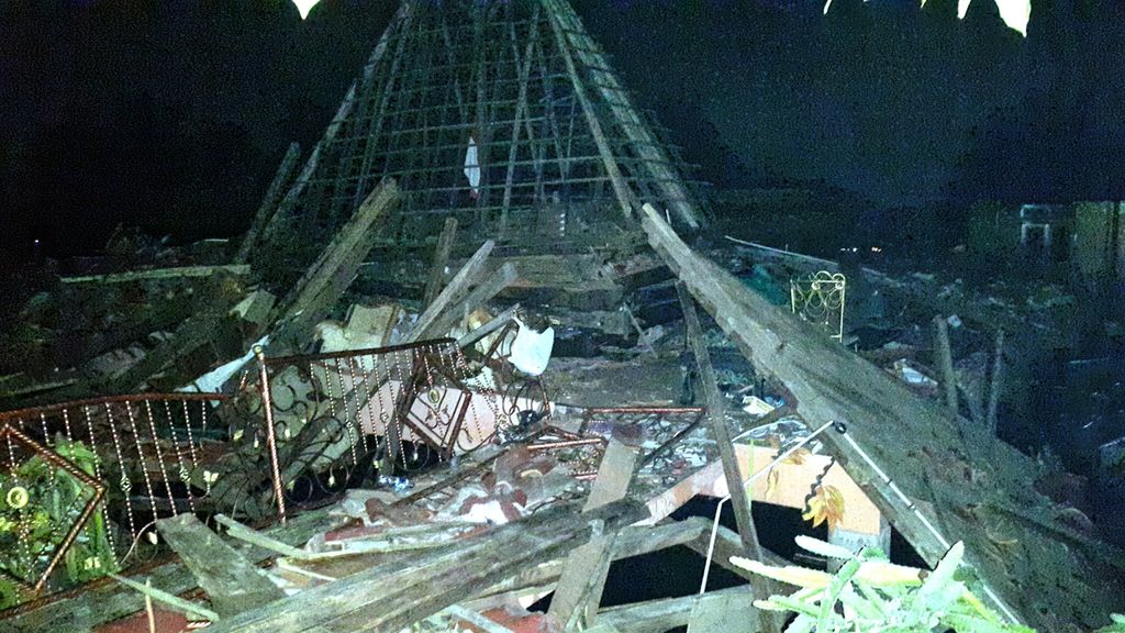 "Semua korban terjebak didalam reruntuhan atap, selain balok juga ada beberapa pecahan kaca berserakan didalam runtuhan. Beberapa korban yang selamat keluar sendiri dengan cara menggeser genting, baloknya tertahan sound system yang disediakan panitia acara," kata Abdurrohim (28) warga setempat kepada detikcom, sekira pukul 20.41 WIB.