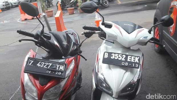 Polisi juga menyita 1 unit motor Honda Vario bernopol B 3552 EEK yang digunakan sebagai alat kejahatan, sebilah sangkur, 4 buah obeng dan 1 tang, 3 unit handphone, 2 pasang pelat nomor F 4427 QR dan F 3403 CB, serta helm.