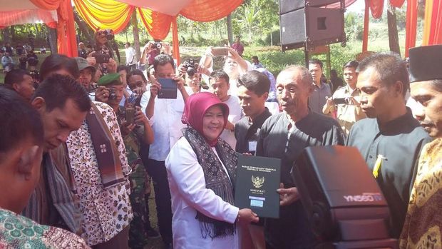 "Ada 2.775 sertifikat yang diberikan hari ini. Penerimanya adalah masyarakat yang memang sudah lama menggarap lahan-lahan itu," kata Ferry kepada wartawan, Senin (30/05).