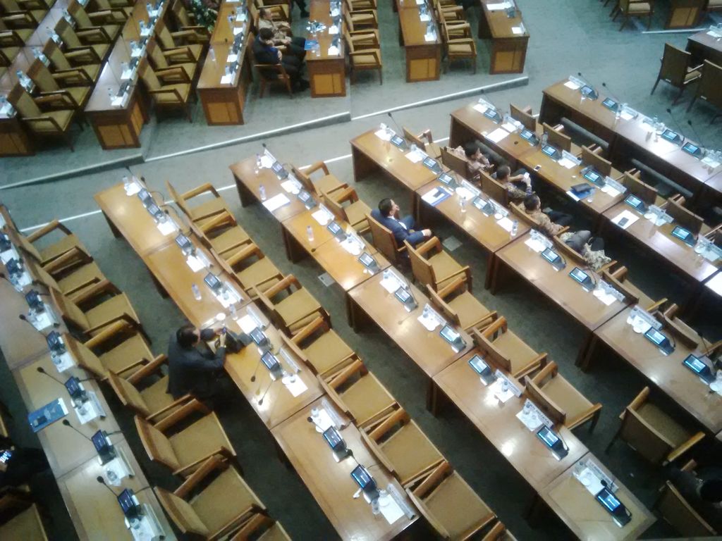 Pantauan di ruang sidang paripurna gedung DPR, Jakarta, Kamis (2/6/2016), kursi-kursi anggota tampak banyak sekali yang kosong sejak paripurna dimulai sekitar pukul 10.35 WIB.