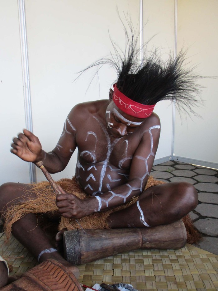 Bersama dua rekannya Johanis dan Leo dia mengukir sebuah suvenir seperti perisai, jimbe yang terbuat dari kayu merbau. Dia telah berkeliling Indonesia untuk pameran hasil pahatan/ukiran suku Kamoro yang diprakarsai PT Freeport Indonesia. Dengan cekatan, dia menggunakan sebuah pisau ukir dan bantalan kayu sebagai palu dia menyelesaikan ukirannya.