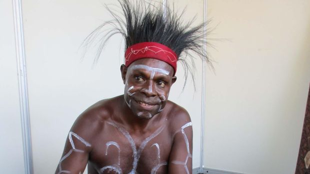 Keahlian Herman bersama rekan-rekannya ditunjukkan dalam acara "Papua Day" yang digelar di halaman Pusat Kebudayaan Koesnadi Hardjasoemantri (PKKH) Universitas Gadjah Mada (UGM) di Yogyakarta, Jumat (3/6/2016) sore.