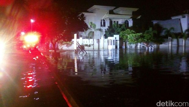 Pantauan detikcom di salah satu titik di kompleks Perumahan Mutiara, Kecamatan Penjaringan, Jakarta Utara, Jumat (3/6/2016) malam, ketinggian air mencapai 20 Cm hingga 30 Cm.