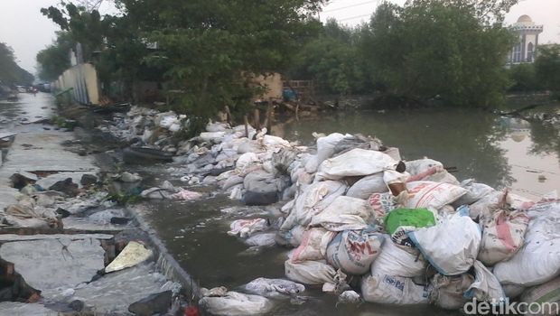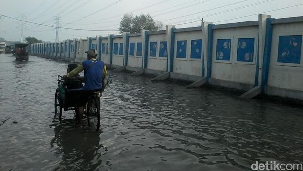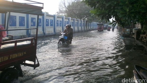 Kondisi Jalan di sekitar tanggul Muara Angke yang jebol (Foto: Muhammad Fida/detikcom) |